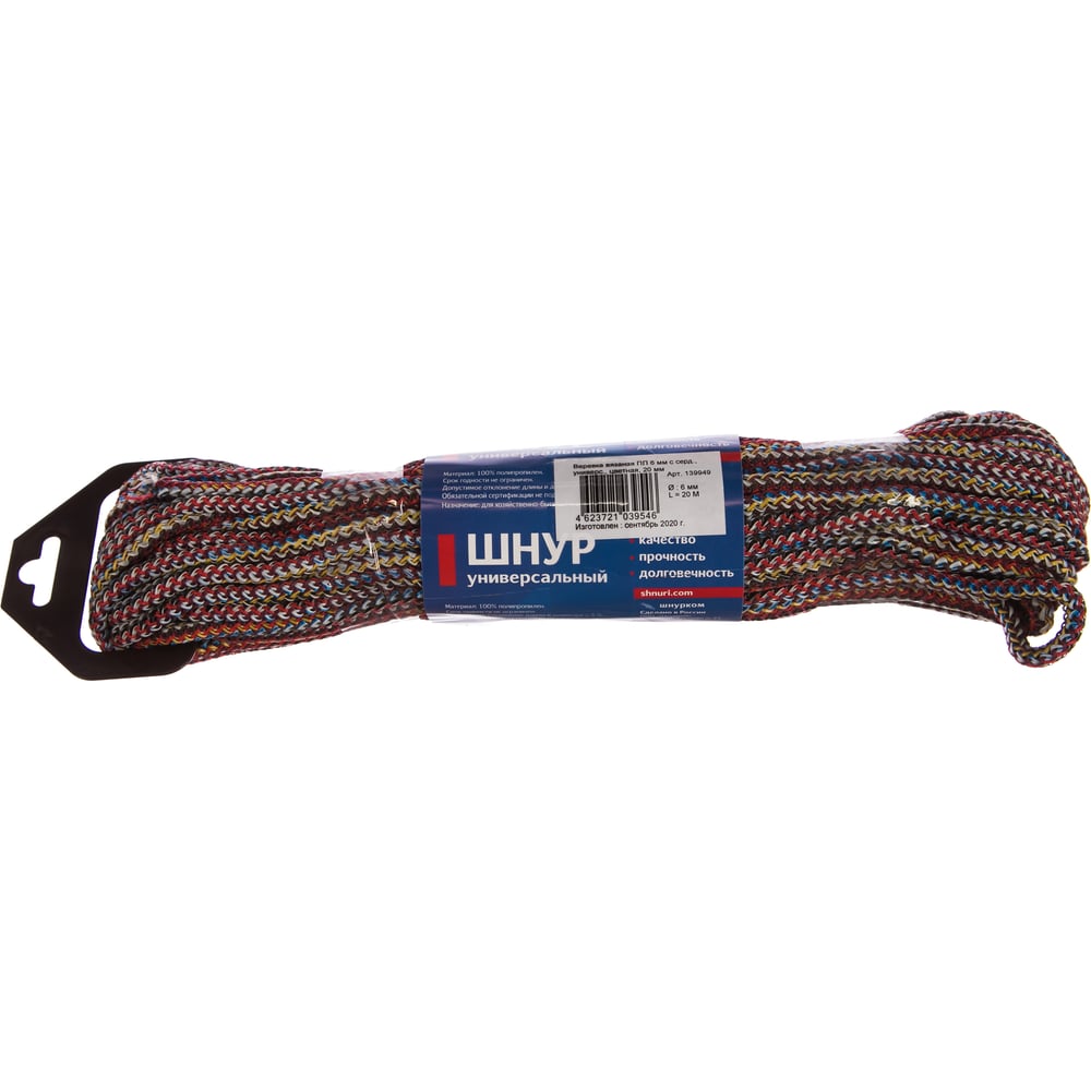 Вязаный шнур Tech-Krep ПП, 6 мм, с сердцевиной, универсальный, цветной, 20 м 139949
