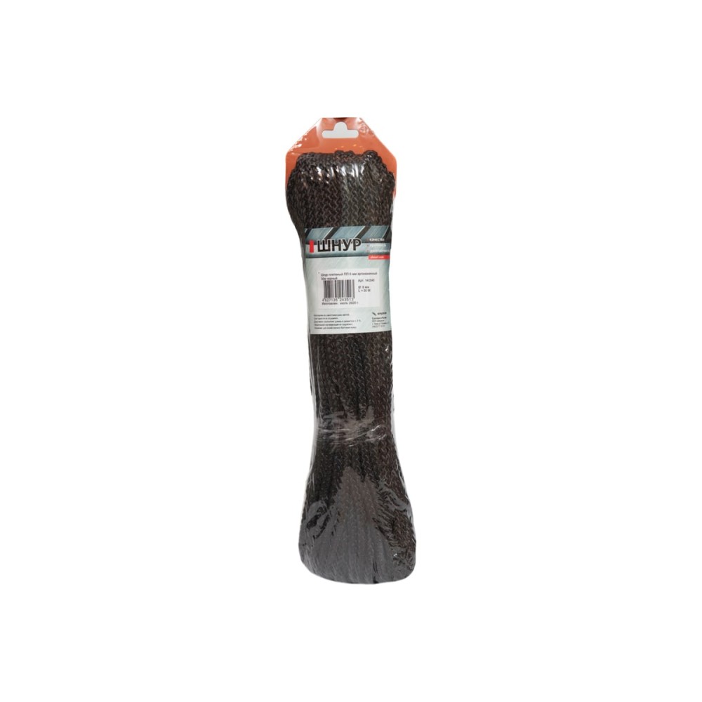 Плетеный шнур ПП 6 мм эргономичный, 16-прядный, черный, 30 м Tech-Krep 140345 способен выдержать значительное усилие на растяжение.