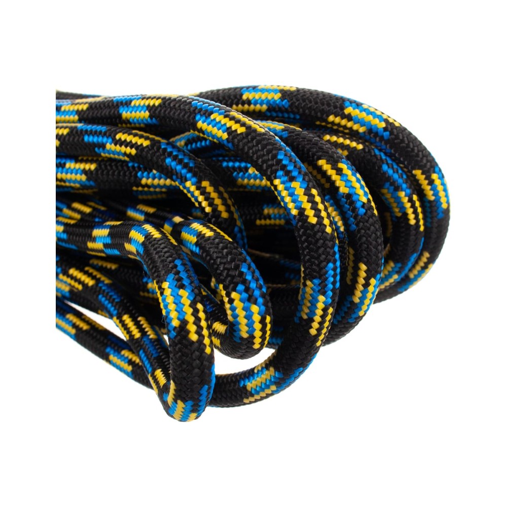 Тип шнур Вид плетеный Применение универсальное Длина 10 м Диаметр 8 мм Материал полипропилен Покрытие нет Цвет черный/желтый/синий Количество прядей 24 Наличие сердечника да Устойчивость к ультрафиолету даГарантия производителя