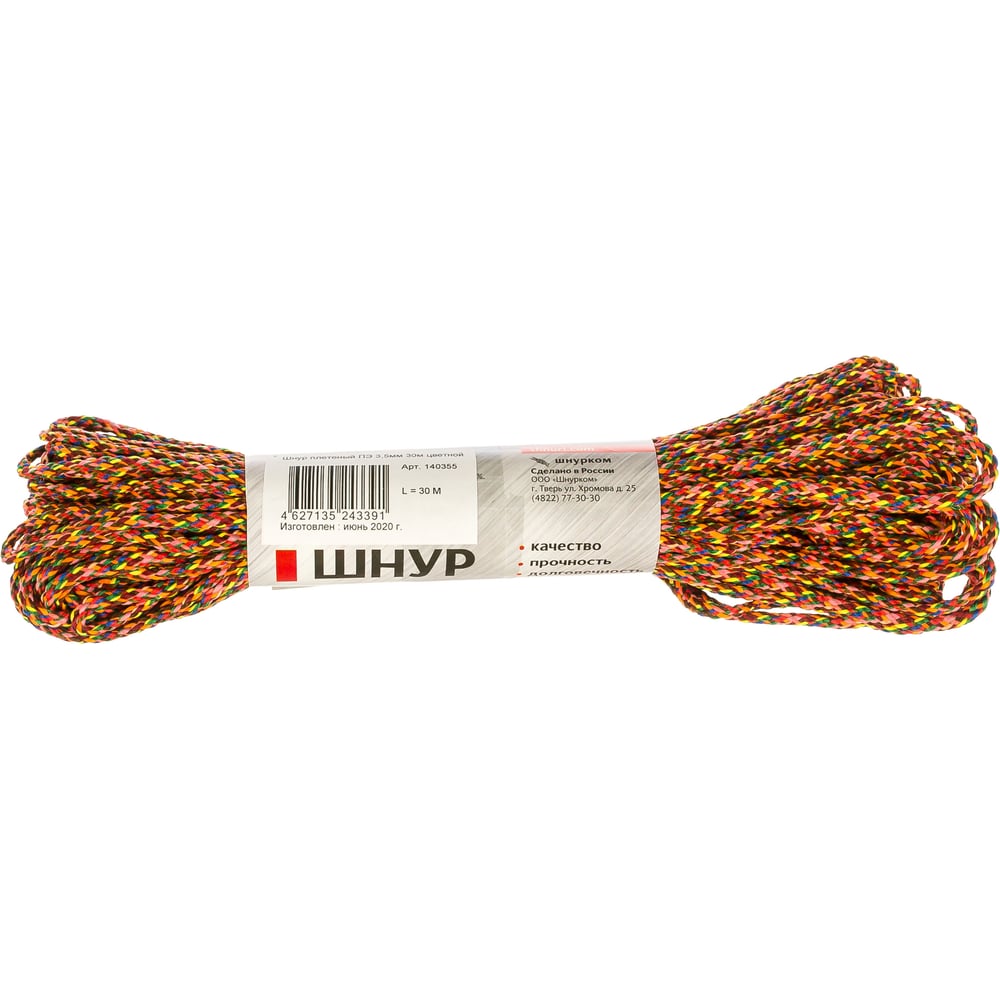 Тип шнур Вид плетеный Применение универсальное Длина 30 м Диаметр 3.5 мм Материал полиэстер Покрытие нет Цвет разноцветный Количество прядей 16 Устойчивость к ультрафиолету даГарантия производителя