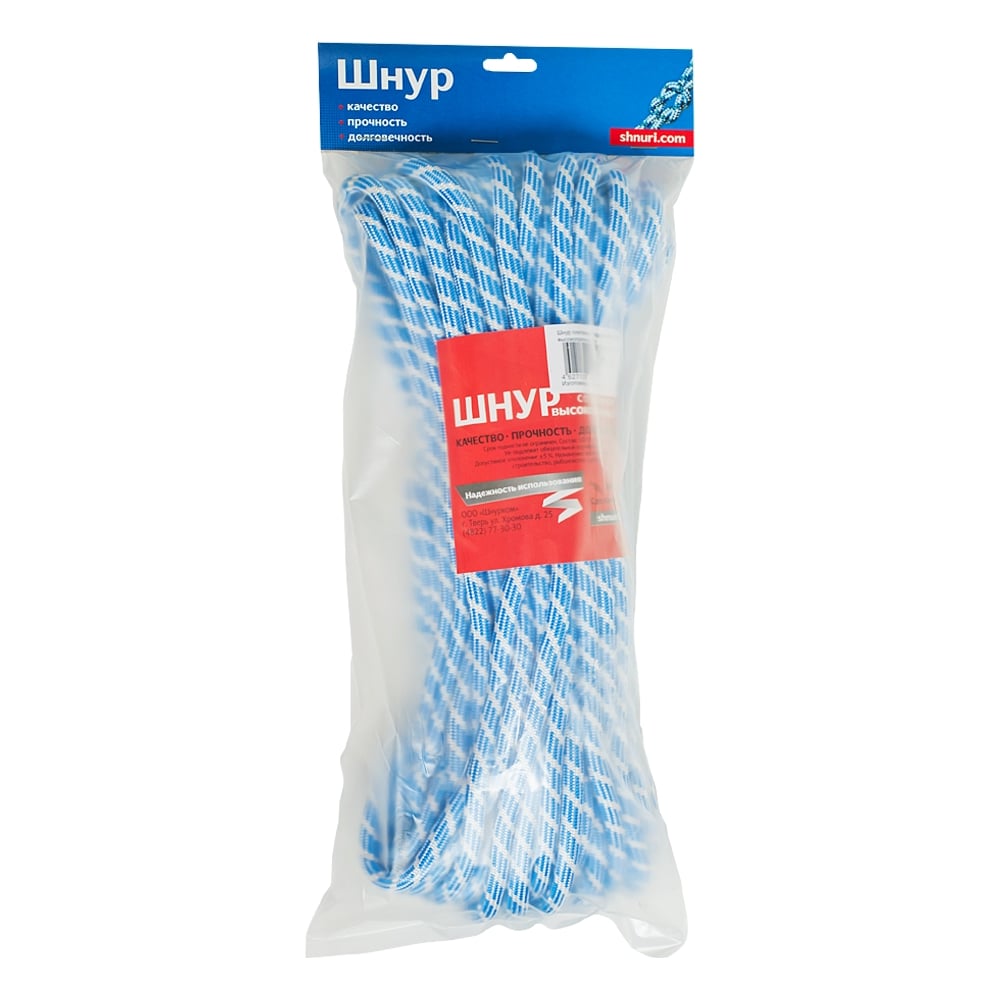 Тип шнур Вид плетеный Применение универсальное Длина 30 м Диаметр 8 мм Материал полипропилен Покрытие нет Цвет белый/синий Количество прядей 24 Наличие сердечника да Устойчивость к ультрафиолету даГарантия производителя