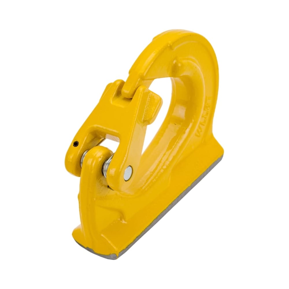 Приварочный крюк снабжен предохранителем для предотвращения случайной расстроповки груза. Крюк не предназначен для нагрузки его боковыми силами, запрещается подвешивать груз на предохранительный замок и конец крюка.