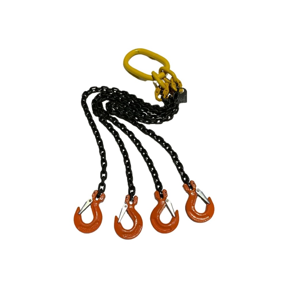 Цепной четырехветвевой строп ТРАСТ 4СЦ 6,7 т, 1000 мм, 8 класс 4687201915560 представляет собой универсальное грузозахватное приспособление для подъема и перемещения грузов, состоящее из четырех цепей высокого класса прочности. Строп оснащен крюками с защелками для безопасной эксплуатации. Иногда цепной четырехветвевой строп обозначают как «паук цепной», также он соответствует марке «строп 4сц».