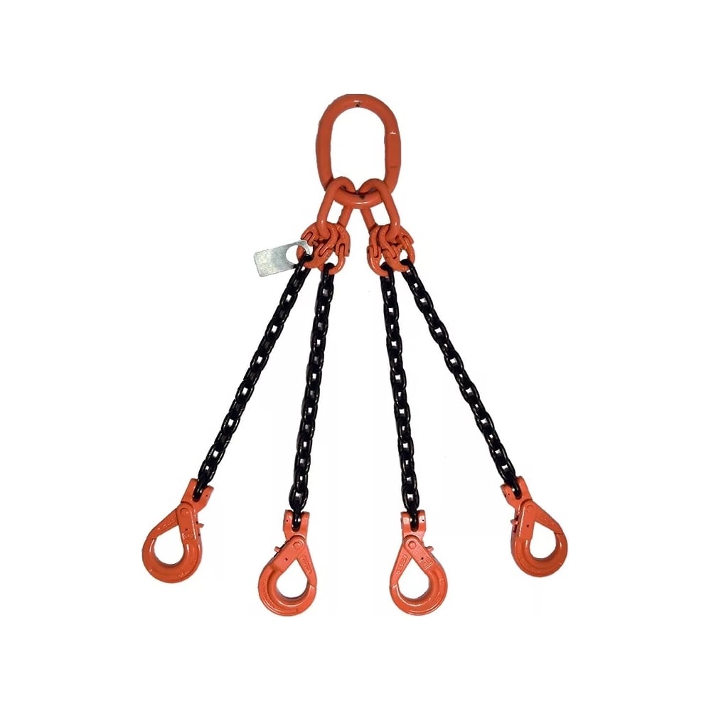 Четырехветвевые цепные стропы представляют собой устройство, состоящее из четырех цепей высокого класса прочности, одним концом закрепленных на соединительном звене и оснащенных крюками на свободных концах. Для устройства расчета грузоподъемности этого учитывают размеры и форму крюков и звеньев цепей, из которых состоит строп. Иногда црехветвевой строп обозначают как «паук цепной», также он соответствует марке «строп 4сц».