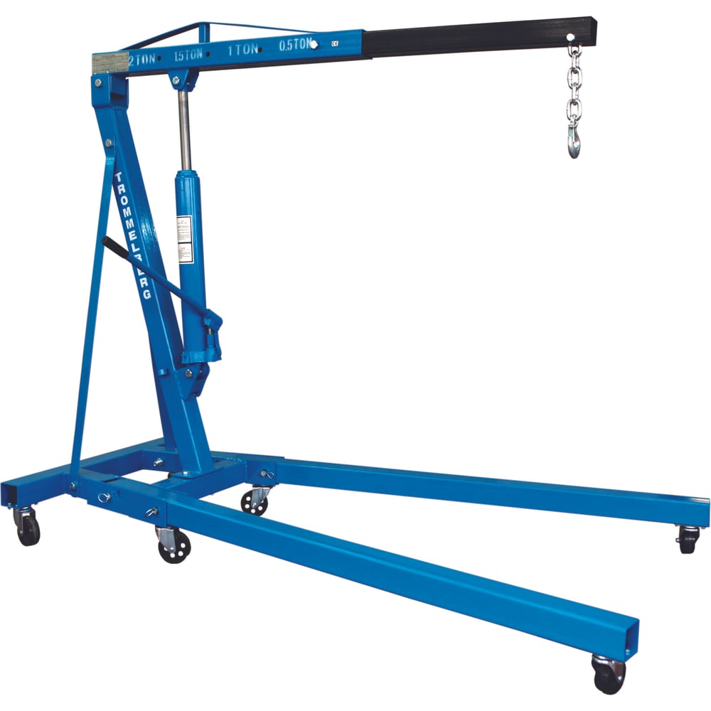 Гидравлический гаражный кран Trommelberg C10601B оснащен ручным гидравлическим приводом. Широко используется для поднятия и транспортировки двигателей и других узлов машин. Устройство защищено от перегрузки, благодаря встроенному аварийному клапану. Складная конструкция позволяет хранить кран после эксплуатации даже в условиях недостатка пространства.