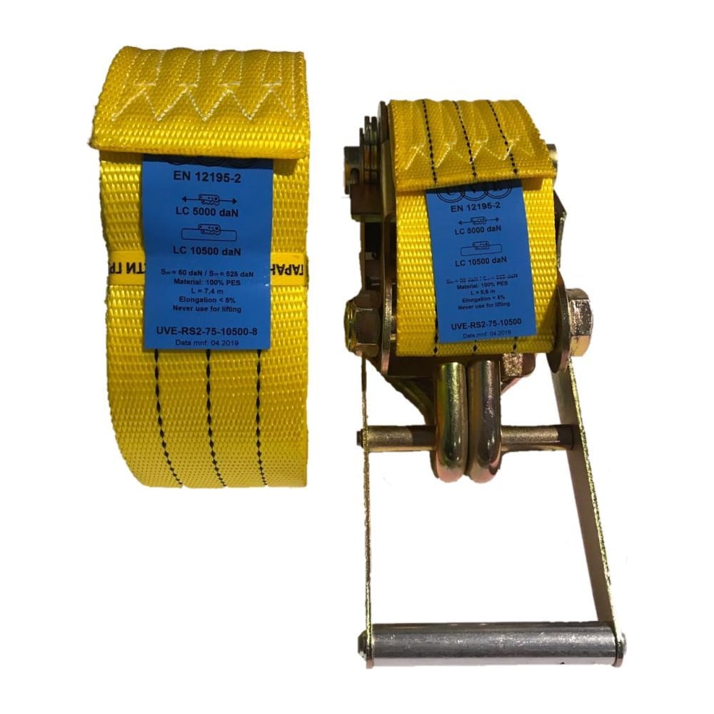 Тип ремень с крюками и фиксатором Стяжное усилие 10 т Длина 10 м Ширина 75 мм Цвет желтый Материал полиэстер ГОСТ/ТУ EN 12195-2 Вес нетто 7 кг Количество в упаковке 1 штГарантия производителя 6 месяцев