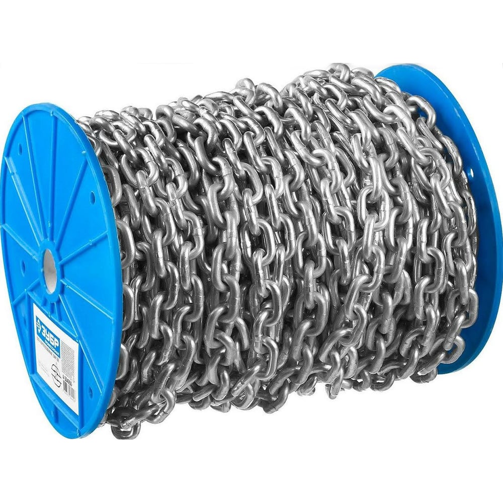 Короткозвенная цепь Зубр DIN 766 оцинкованная сталь, d=5мм, L=45м 4-304050-05