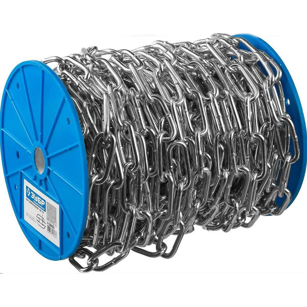 Цепь длиннозвенная Зубр 4-304030-10 предназначена для перемещения грузов и их подъема на нужную высоту с помощью различных грузоподъемных устройств. Она изготовлена из оцинкованной углеродистой стали с помощью сварки. Цепь можно легко укорачивать до нужного размера путем образования петли, вставляя звено в звено. Не предназначена для ударных нагрузок.